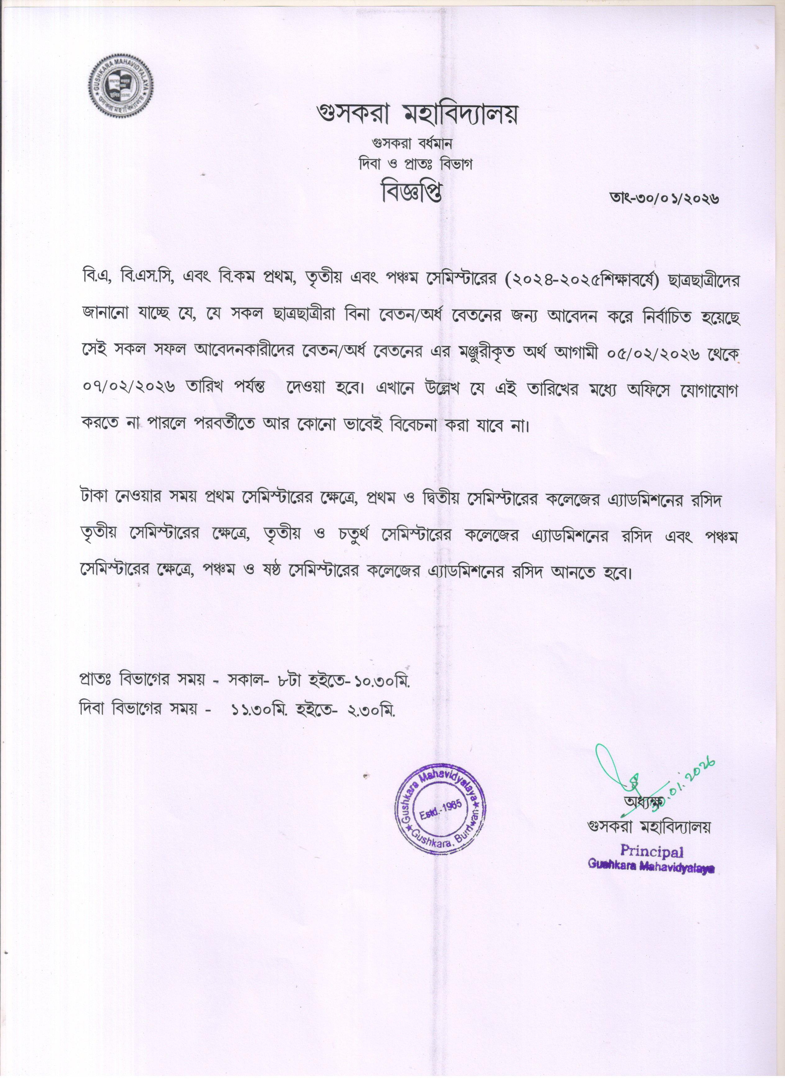 Notice for Full free & Half free Semester-1,3,5 Session-2024-25 (Morning Section & Day Section) 30/01/2026